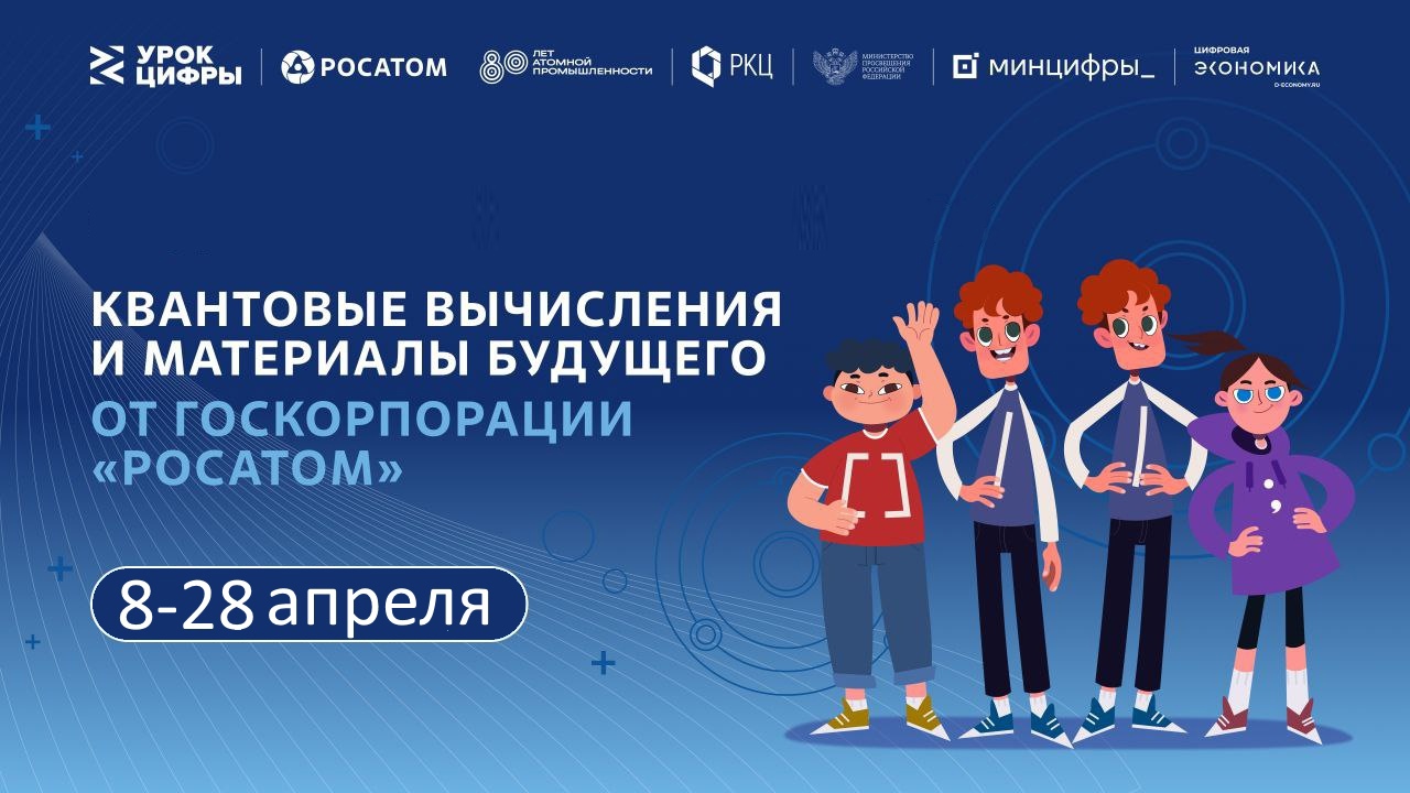 8 апреля 2025 г. стартует всероссийский проект «Урок цифры» по квантовым технологиям, который проводится АНО «Цифровая экономика» совместно с Государственной корпорацией по атомной энергии «Росатом» (далее – Госкорпорация «Росатом») при поддержке Минпросвещения России и Минцифры России. Тема урока – «Квантовые вычисления и материалы будущего».